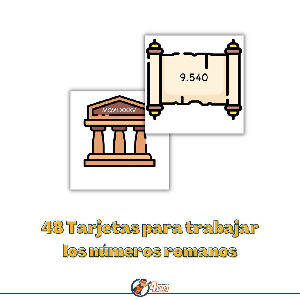 🧮 48 tarjetas para trabajar la escritura de números romanos desde el sistema de numeración decimal y viceversa.