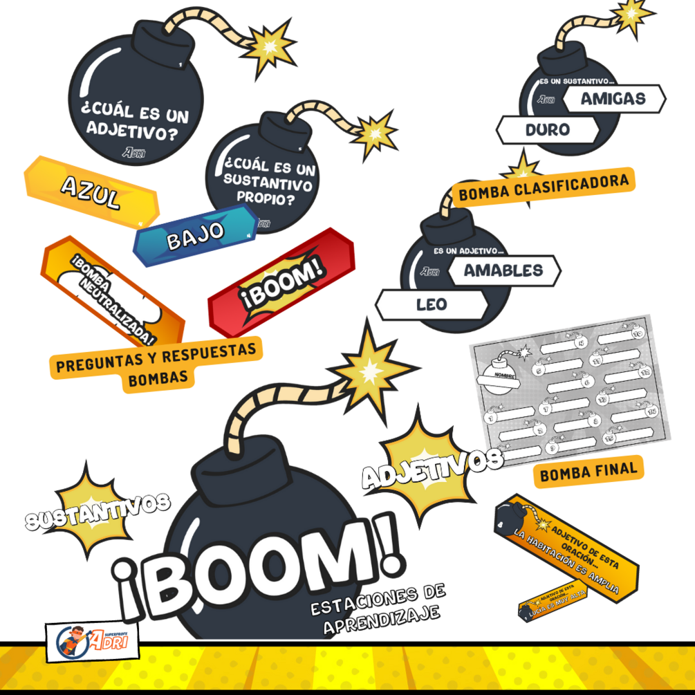 ¡BOOM!- Estaciones de aprendizaje: SUSTANTIVOS Y ADJETIVOS