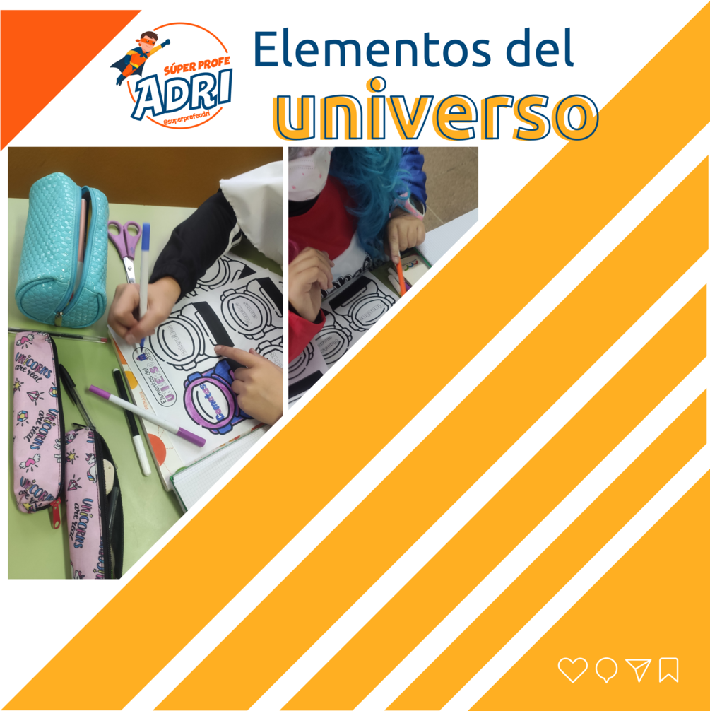 Para crear un resumen de los elementos que podemos encontrar en el Universo, hemos utilizado diversos astronautas, los cuales representan cada elemento del universo (galaxia, nebulosa, planeta, planeta enanos, estrellas, satélites, cometas y asteroides).